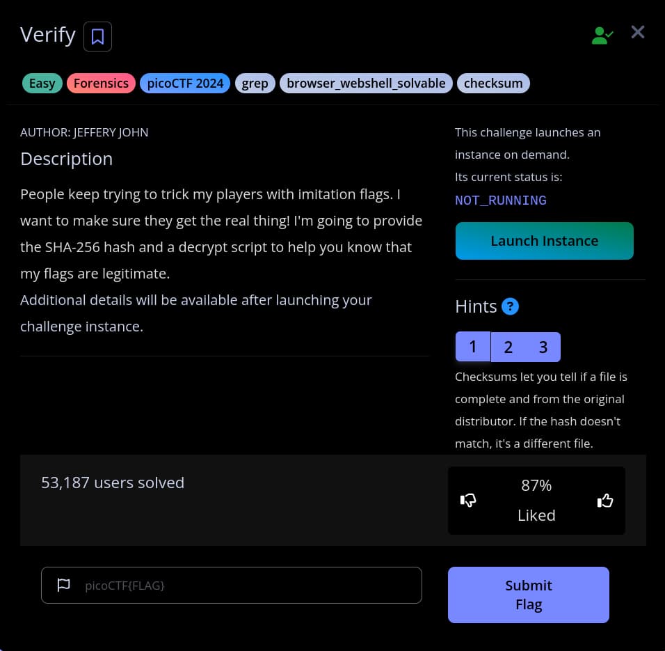 Welcome back to the write-up series of picoCTF. Today we’ll see about the Verify