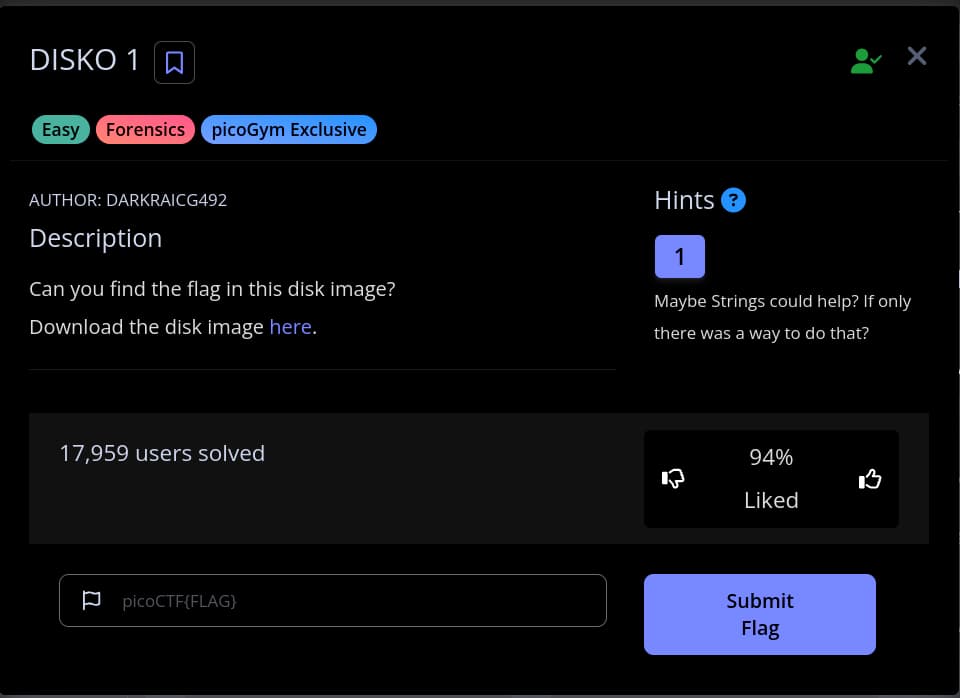Welcome back to the write-up series of picoCTF. Today we’ll see about the DISKO 1
